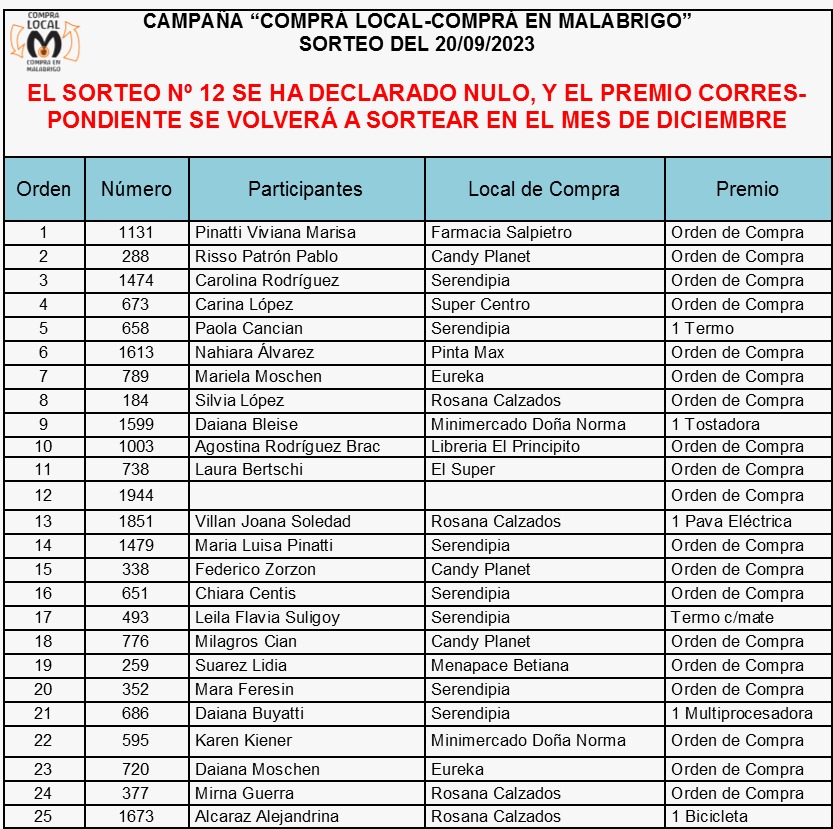 GANADORES DEL "COMPRE LOCAL" DEL CENTRO COMERCIAL E INDUSTRIAL DE MALABRIGO. - FM Ella